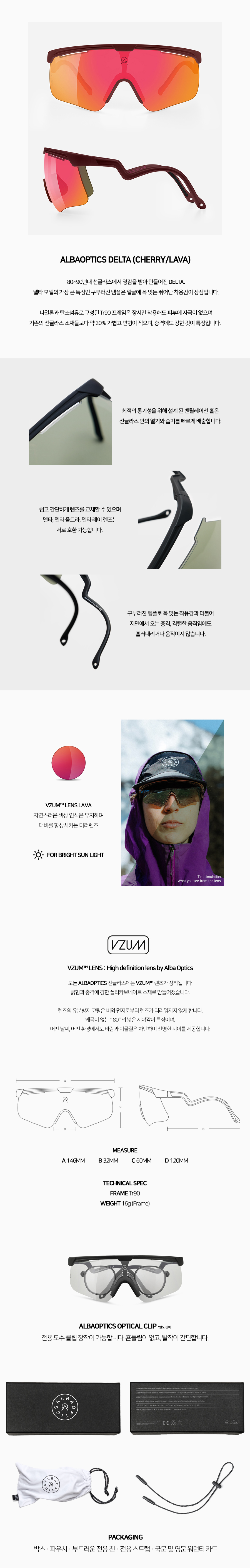 알바옵틱스 델타 체리/라바 모델입니다. 라바 렌즈는 밝고 녹음이 짙은 환경에서 대비를 향상 시키는 미러렌즈 입니다.
