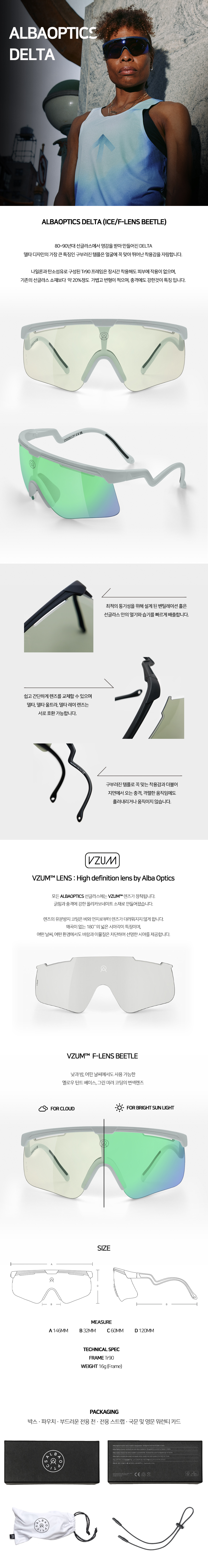 알바옵틱스 델타  아이스/비틀 미러 변색 모델입니다. 비틀 미러 변색 렌즈는 낮과 밤, 어떤 날씨에서도 사용 가능한 옐로우 틴트 베이스, 그린 미러 코팅의 변색렌즈입니다.