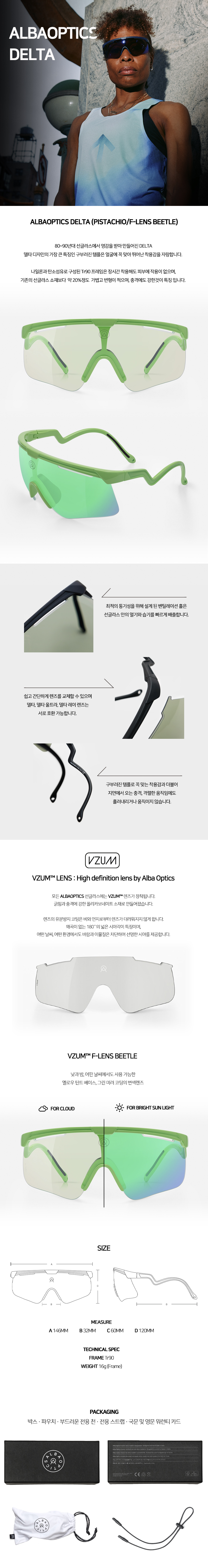 알바옵틱스 델타  피스타치오/비틀 미러 변색 모델입니다. 비틀 미러 변색 렌즈는 낮과 밤, 어떤 날씨에서도 사용 가능한 옐로우 틴트 베이스, 그린 미러 코팅의 변색렌즈입니다.